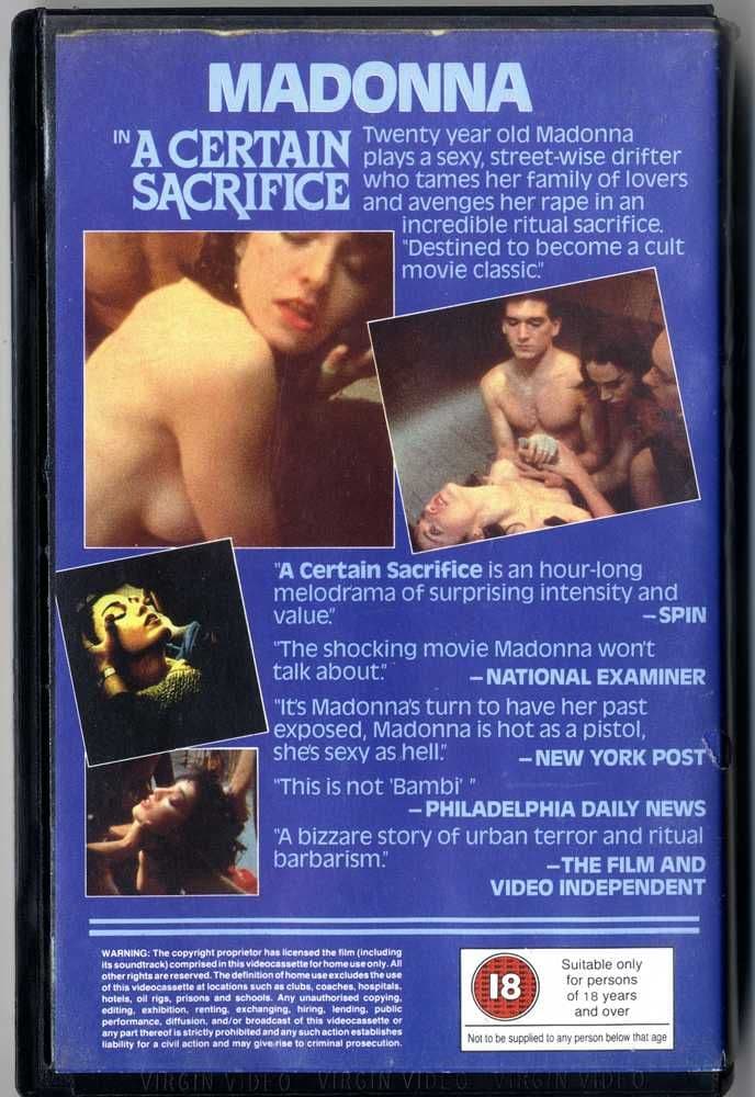 Original 1985 UK 1st issue VHS video cassette 'A Certain Sacrifice' featuring a pre-fame Madonna, A film directed by Stephan Jon Lewicki in the late 70's and later edited and rush released during the height of Madonna's fame in the mid eighties in the format of a 62 minute feature film.