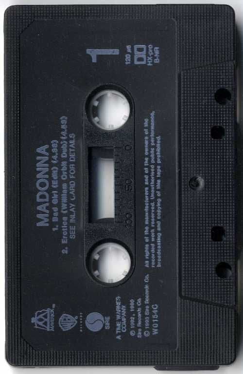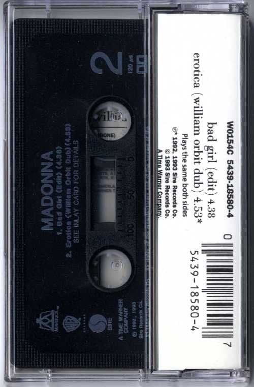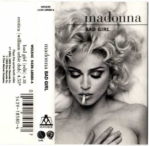 MADONNA - BAD GIRL UK CASSETTE SINGLE W0154COriginal 1993 UK cassingle featuring two tracks which play the same on both sides, Housed in a Clear Cassette Jewel Case with Maverick titled Black Cassette and 'Bad Girl' Picture Inlay-