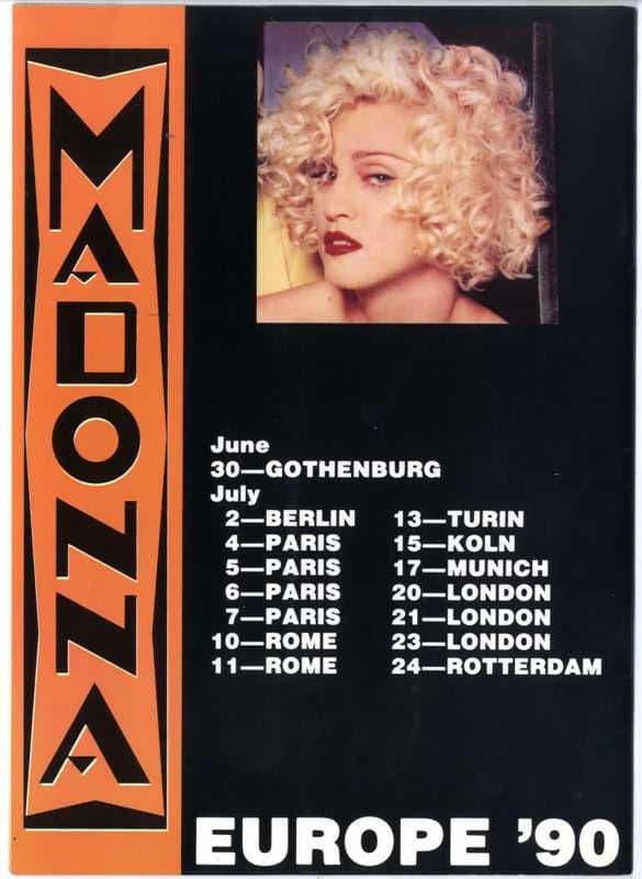 A 20 page book which is often sold as a European Un-authorised 'Blond Ambition' tour book due to being available for sale around the venues & with a back cover which include some 1990 tour dates . Although often sold as a 'BA Program' inside there is no reference to the tour and the 20 pages are dedicated to Madonna's career upto 1989 with pages of info and photo's