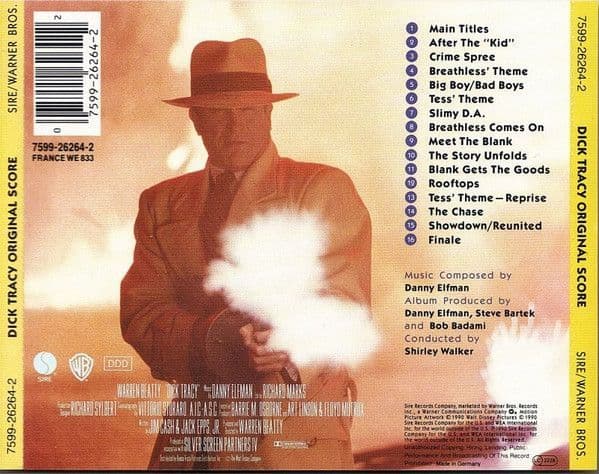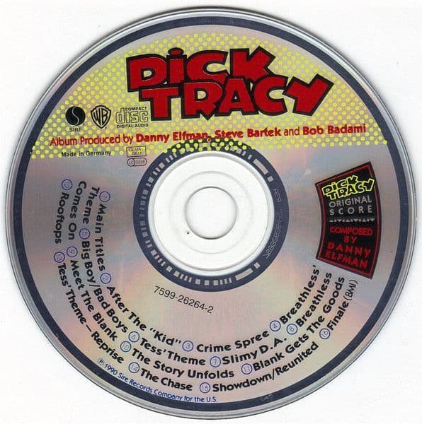 MADONNA - DICK TRACY (ORIGINAL SCORE) GERMANY CD ALBUMOriginal 1990 European cd album 'Dick Tracy (Original Score)' composed by Danny Elfman with a film picture cover which includes a photo of Madonna as breathless inside & featuring 16 songs from the film (The album does not contain a musical recording by Madonna) -