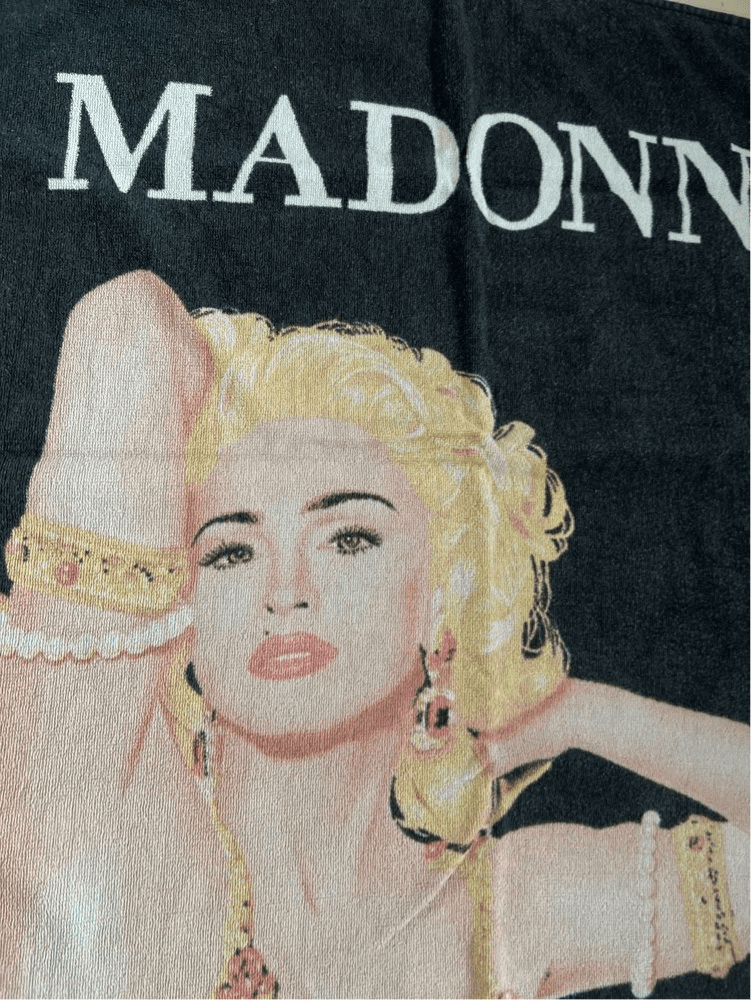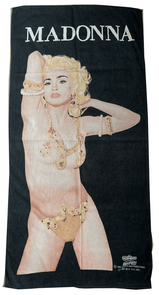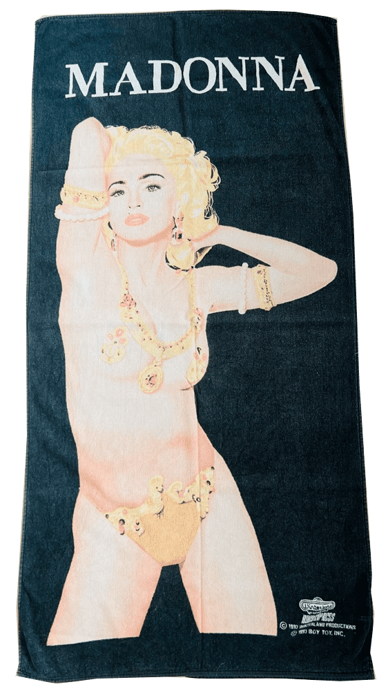 MADONNA - OFFICIAL BOY TOY 1993 EROTICA LARGE BEACH TOWELOfficial USA 1993 Boy Toy 100% Cotton 'Erotica' Beach Towel featuring a stunning image of Madonna in gold jewelled bikini. Measures approximately 5ft x 2.5ft in size and issued officially over 20 years ago with Rock Express & Winterland Production logos.