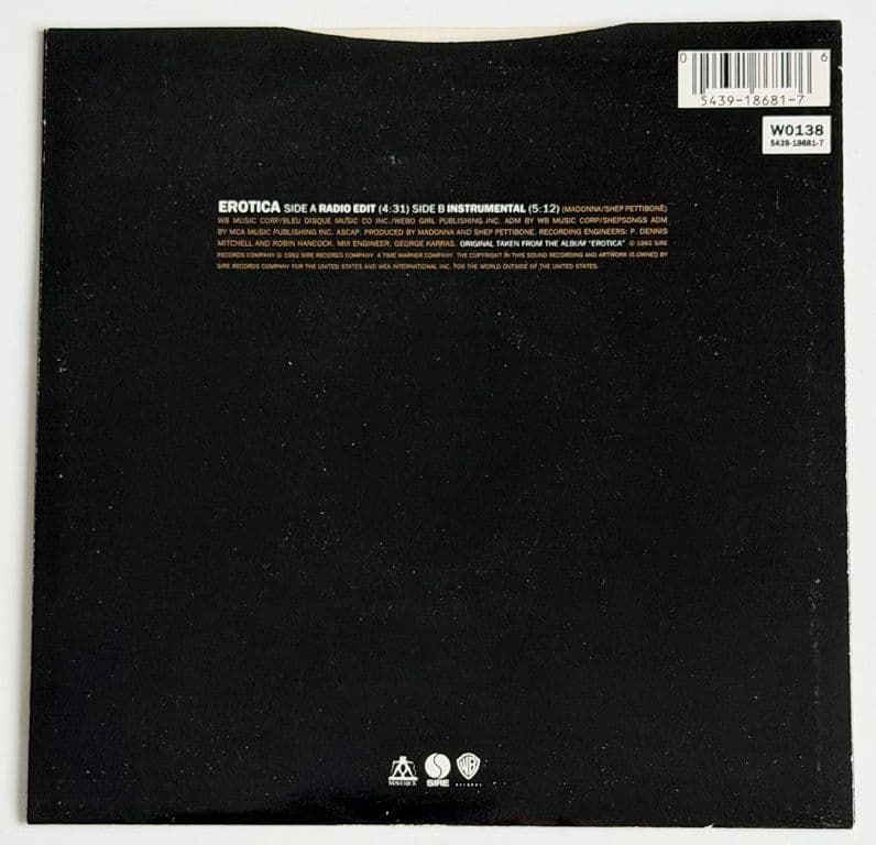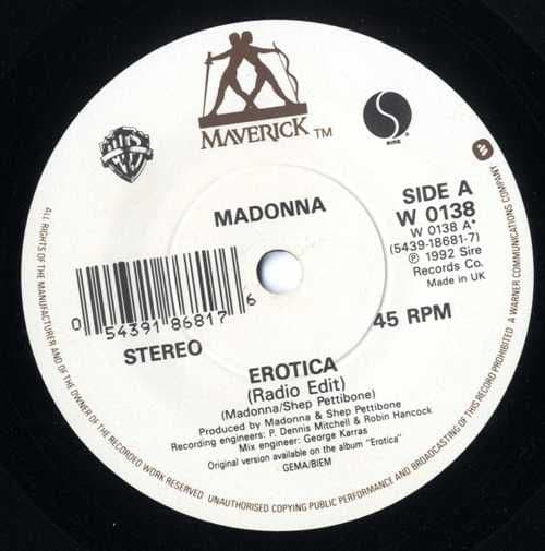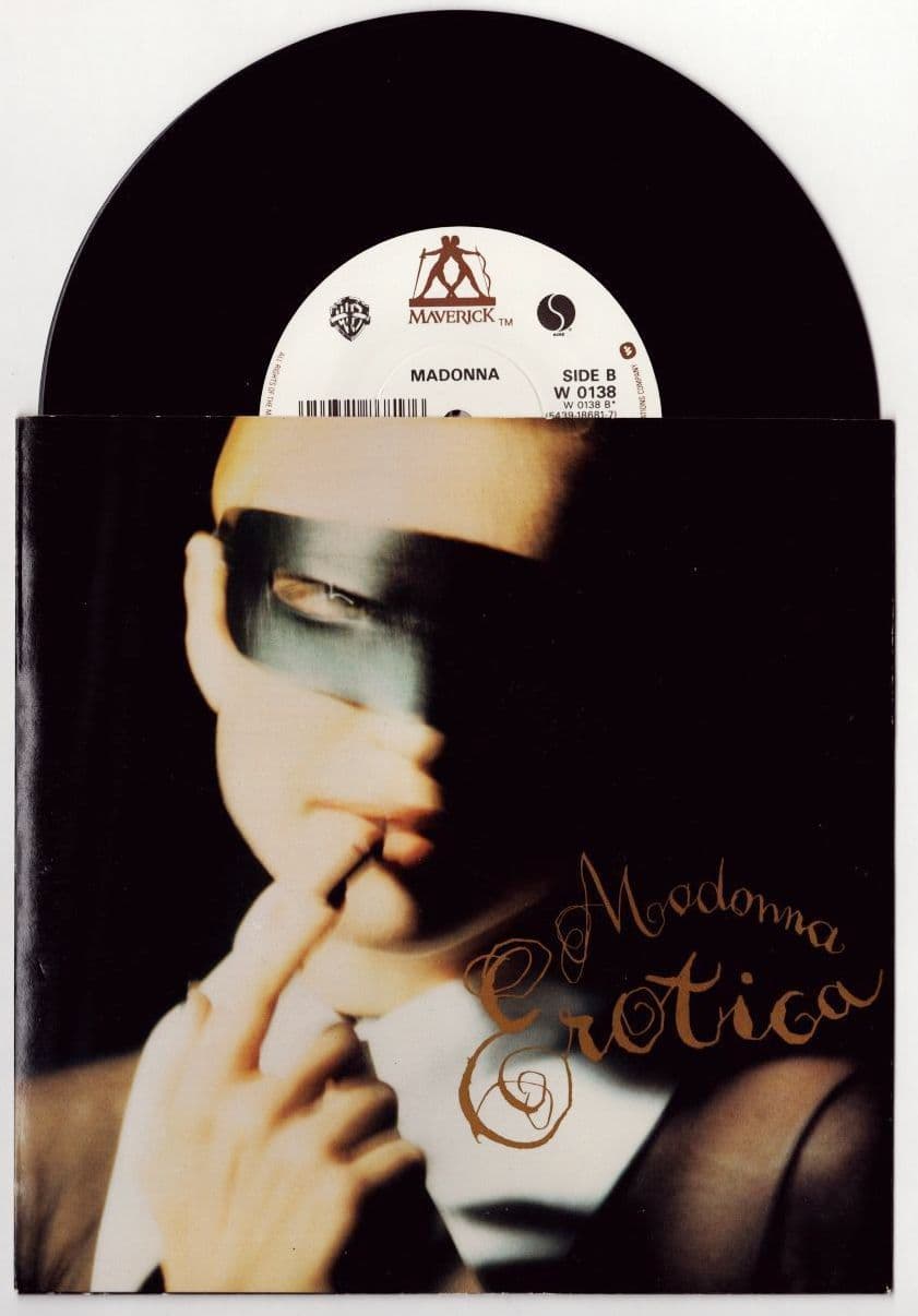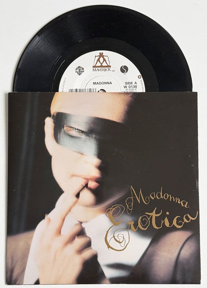 MADONNA - EROTICA UK 7" VINYL W0138Original 1992 vinyl 7" single issued in a Madonna 'Mask' picture sleeve with white Maverick made in the UK labels and featuring 2 tracks -