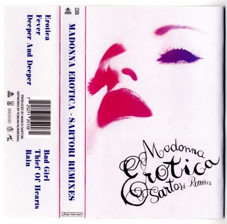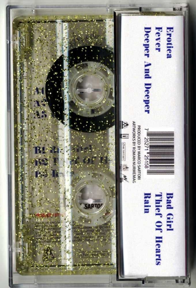 MADONNA - EROTICA (SARTORI REMIXES) GLITTER REMIX CASSETTELimited gold glitter cassette housed inside a jewel case with a stunning picture sleeve, featuring a different remix project with six Madonna tracks