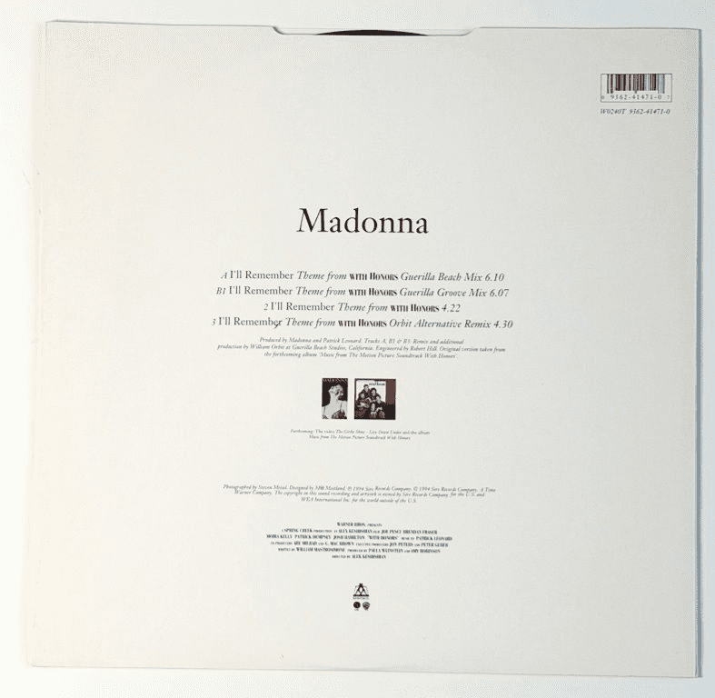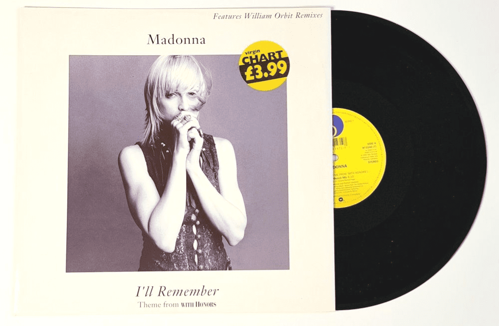 MADONNA - I'LL REMEMBER UK 12" VINYL W0240T Original 1994 UK 12" vinyl pressing issued in a Madonna white bordered picture sleeve & featuring the theme from 'With Honors' with 'William Orbit Remixes' -