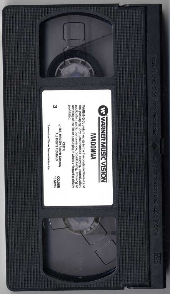 Official 1984 UK VHS Warner Video compilation featuring 4 full Madonna videos, housed in a plastic video case with picture insert & video cassette which includes a Warner Music Video printed on the, with a Warner Music Vision label -