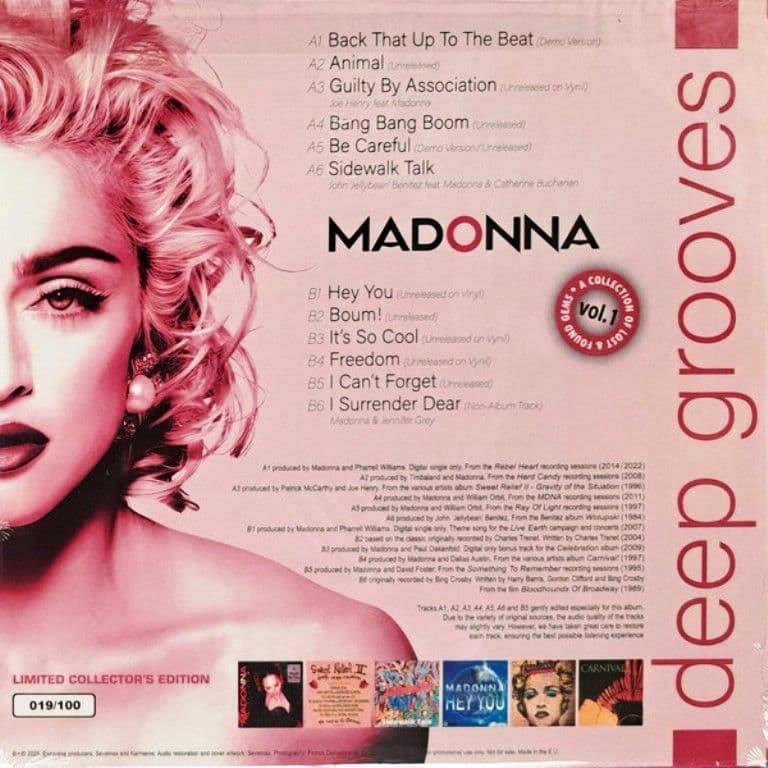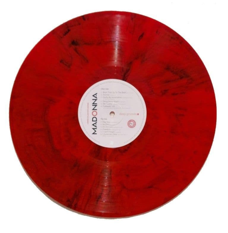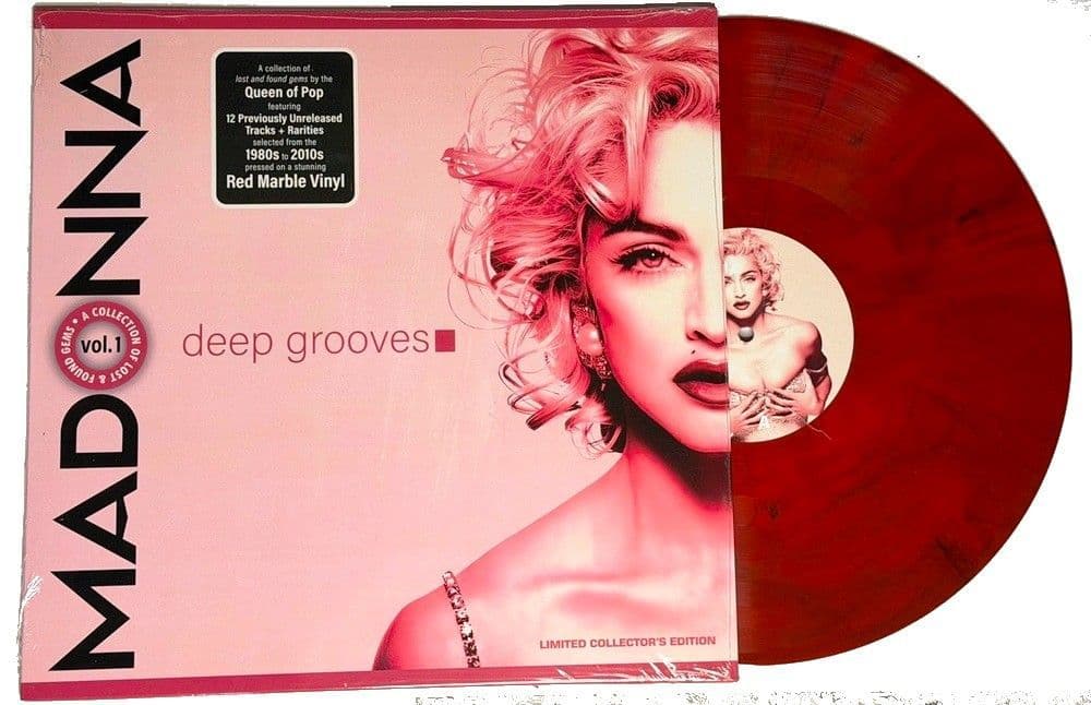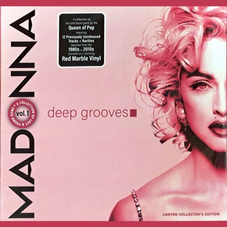 Madonna : Deep Grooves (Volume 1) is a 12 track red marble colour vinyl LP pressing featuring a collection of lost & found gems, including previously unreleased tracks & rarities selected from the 1980's - 2010's, A limited collectors edition housed in Madonna picture sleeve & featuring -
