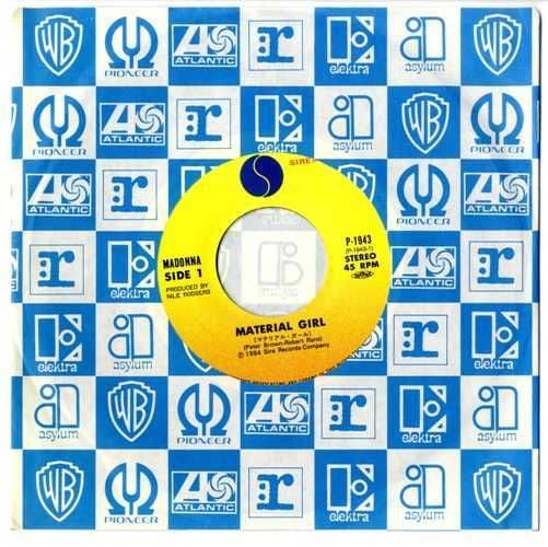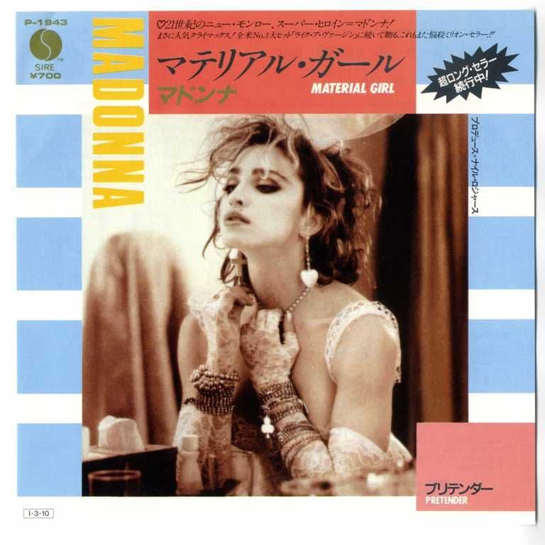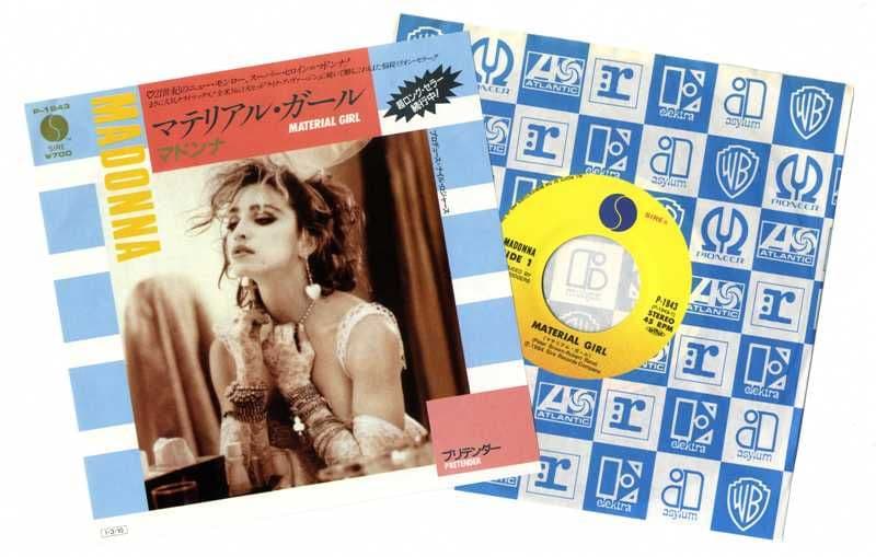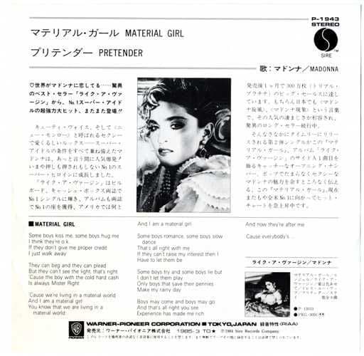 MADONNA - MATERIAL GIRL JAPANESE 7" VINYL P-1943Original Japan 7" vinyl single released in 1985 in Japan with a unique Blue & White bordered 'Virgin' Picture Insert with Japanese text and featuring 2 Tracks -