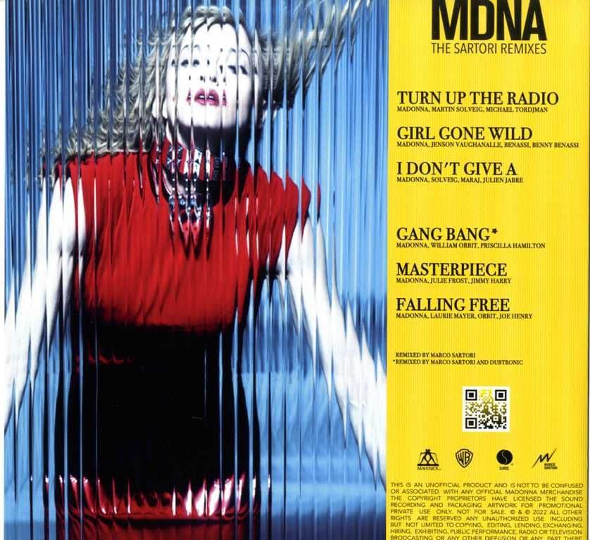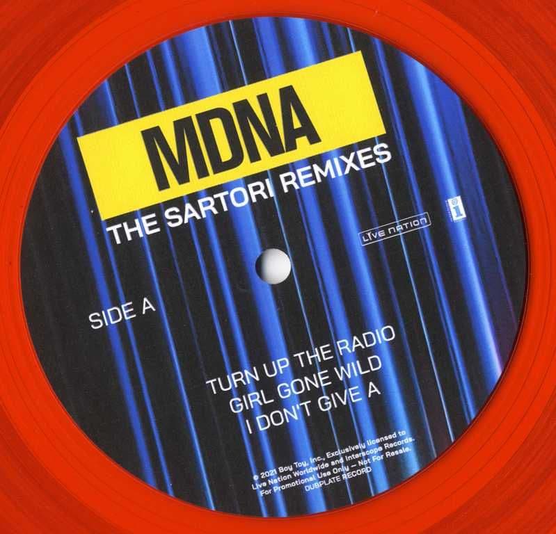 Limited Edition 'MDNA' (Sartori Remixes) 12" red colour vinyl housed inside a stunning picture sleeve, featuring 6 album remixes -