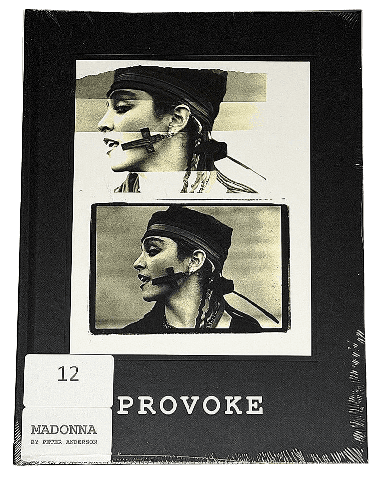 Limited Edition #12 of only 100 with "The Lost Negative" Chris Anderson Signed / Numbered Print ‘Provoke’ is the first complete publication of Peter Anderson’s entire photographic collection of Madonna, shot October 1983. Comprising of all the celebrated portraits, unprinted negatives, unpublished colour slides, never before seen collages, discarded darkroom prints and the contact sheets. In short everything. Shot on the rooftop of Warner Brothers (WEA) building, Broadwick Steet Soho, London - Thursday 13th October 1983. The shoot was originally commissioned for the NME, by Barbara Charone - Head of press at Warner Brothers (WEA). Peter has one hour with Madonna before the light was dropping. "I first met Madonna at a record company office in Soho. It was her second trip to London, she was running late from shopping. She quickly put her make-up on, then we headed up to the roof of the building. Her beauty radiated as she danced & performed for the camera - Peter Anderson. The strictly limited edition features an alternative unique surface mounted darkroom photograph (an original photo test from 1983). 156 pages, bound with a thread sewn spine, In a handsome ebony hardback cover. The "Provoke" title is de-bossed in a brilliant white, high gloss foil, includes a signed, stamped & numbered insert card, together with a handmade silver gelatin dark room print of a previously lost negative, also signed, stamped & numbered 100 “Strictly Limited Edition” Signed, stamped and numbered by photographer Peter Anderson, together with a “Strictly Limited Edition (The Lost Negative)” – original handmade silver gelatin dark room print. NOTE the “Lost Negative” photograph is NOT featured in the book, exclusive as the print only. Published November 2025 by NJG. Strictly 100 Limited Edition Size 245mm x 330mm Pages 156 In new sealed condition as seen in the 3rd photo with the #12 sticker on the front cover confirming this is Book #12 containing the signed / numbered print inside |