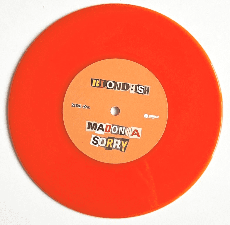 SORRY (With MADONNA) - BLOND:ISH REMIXES 7" ORANGE VINYL Limited Edition custom made 7" orange colour vinyl housed inside a picture sleeve with printed labels, featuring two "Blond:ish" remixes sampling the Madonna track "Sorry" (never commercially released on vinyl or cd format) -