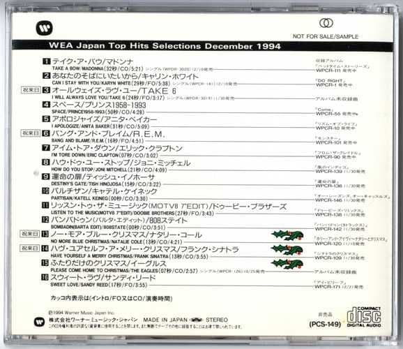 MADONNA - TAKE A BOW on WEA TOP HITS SELECTION (JAPAN PROMO CD) PCS-149Original 16 track promotional only cd album issued in limited quantities by 'Warner Music Japan' as a various artists promo CD to promote the releases in December 1994 featuring 'Take a Bow' as track #1.